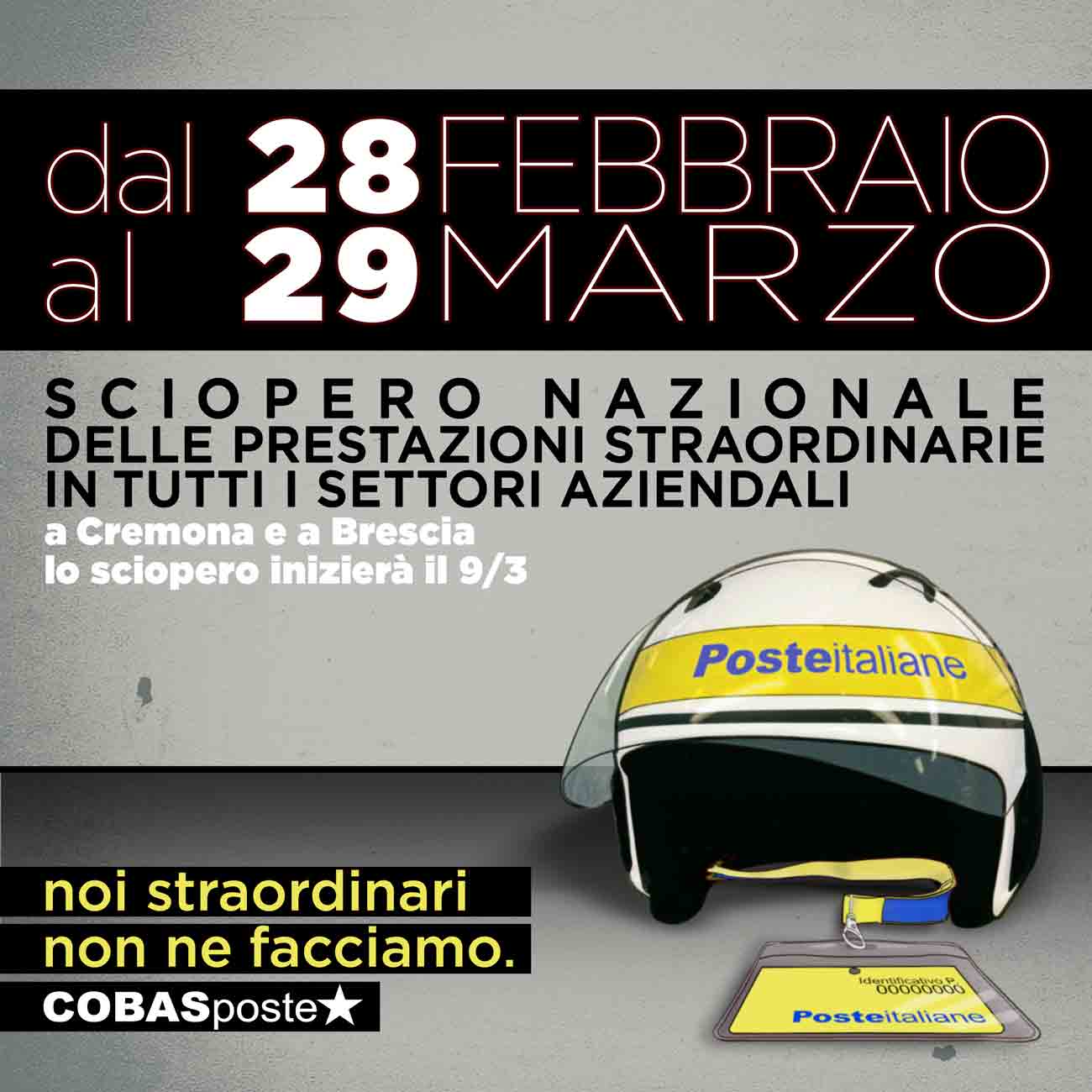 Cobas poste è un organismo sindacale di base composto esclusivamente da Lavoratrici e Lavoratori che attraverso l'autorganizzazione mettono in atto la contrarietà alle politiche aziendali tese all'esclusivo profitto per manager ed azionisti. Rivendicando il servizio offerto come bene necessario per la collettività esercitano una molteplicità di azioni ad autosalvaguardia dell'operato e della integrità di chi lavora ogni giorno.