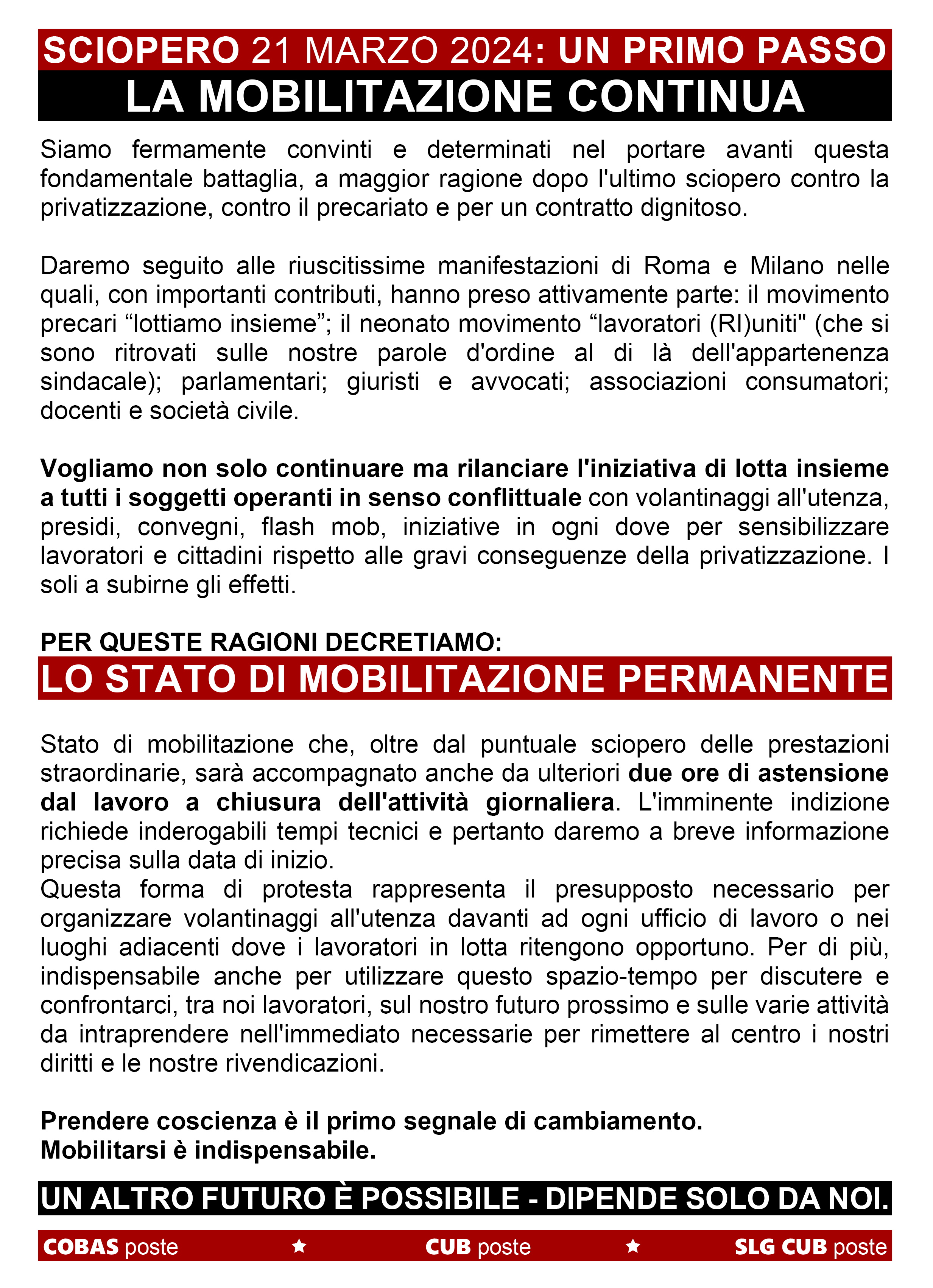 SCIOPERO 21 MARZO 2024: UN PRIMO PASSO