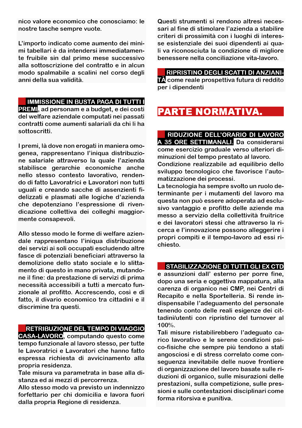 Ribandendo la nostra contrarietà ad ogni forma di salario indiretto ed accessorio vincolato alla produzione che distribuisce in maniera iniqua i compensi destinati ai lavoratori anche attraverso gli strumenti di incentivazione, di welfare aziendale, di premi ad personam e di raggiungimento budget, alla presenza per cui chi si ammala è penalizzato. Rivendicando aumenti cospicui di salario diretto (da contratto, per essere più chiari) con l’immissione in busta paga di tutto il capitale che oggi viene destinato a tali premi.