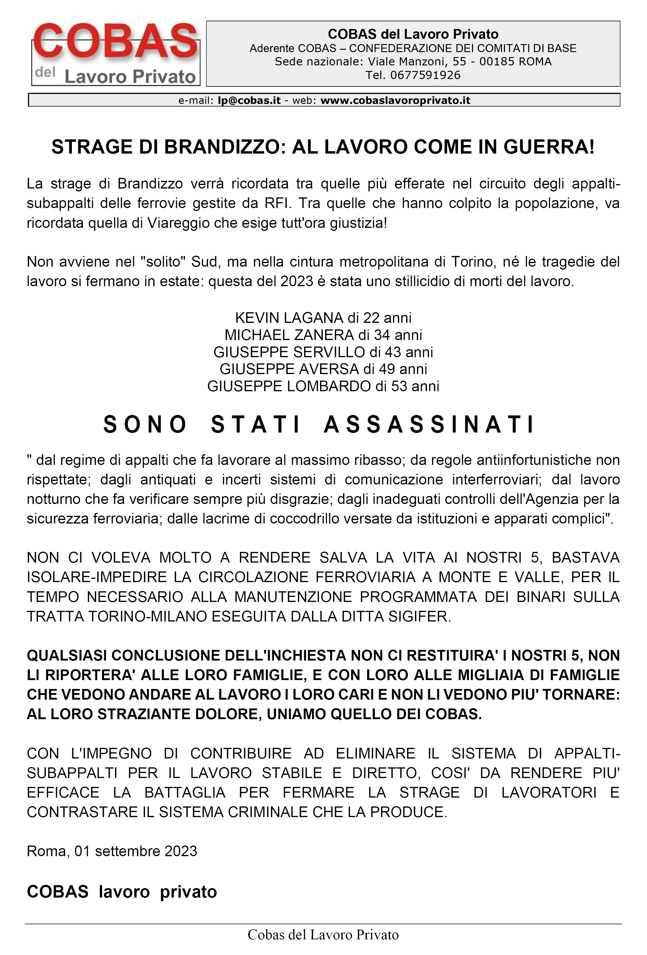 La privatizzazione di ferrovie dello stato ha comportato, tra le altre cose, una riduzione di personale da 230 mila a 83 mila unità; favorisce l’alta velocità a discapito del pendolarismo; il risparmio per massimizzare i profitti ha ridotto la sicurezza fino ad annullarla; le tecnologie altamente sofisticate e digitalizzate vengono adoperate solo per aumentare i ricavi ma non per garantire la sicurezza del lavoro, mantenendo arretrati i sistemi di protezione.